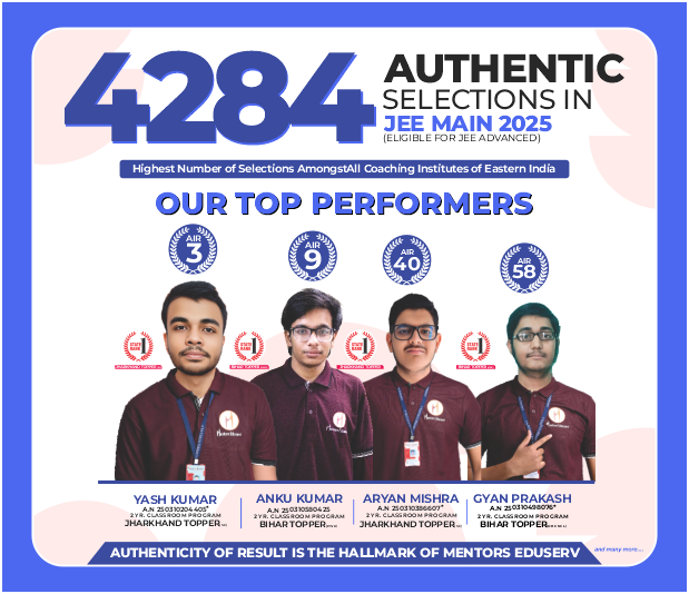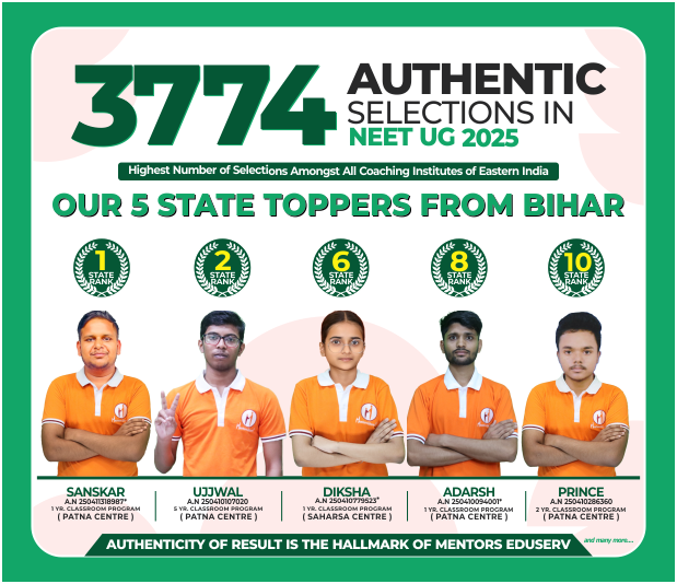 ME-SAT (Mentors Eduserv Scholarship Aptitude Test) is a specially designed exam conducted by Mentors Eduserv to identify talented students across Bihar and Jharkhand and to encourage them through scholarships and prizes. The main objective of this exam is to recognise academic potential at an early stage and to support such students in preparing for competitive exams like IIT-JEE and NEET, so that they can secure top ranks and eventually become successful engineers and doctors from India’s premier institutes. During their preparation for IIT-JEE and NEET, students are also trained for School Exams, Board Exams and Olympiads.